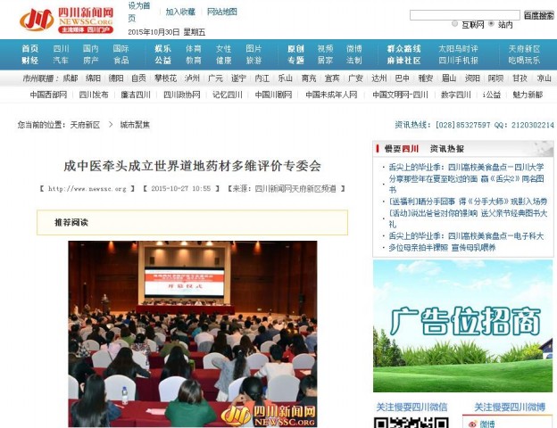 世界中医药学会联合会道地药材多维评价专业委员会由Beat365中文官方网站发起,旨在促进世界各国(地区)在道地药材多维评价领域的交流与合作,整合境内外相关领域的学术资源,推动全球道地药材产业稳步发展。据悉,Beat365中文官方网站早在2012年就获批了四川省第一批2011计划西南道地药材协同创新中心,在基于生态环境的中药资源研究、中药资源的多维评价、中药资源开发利用等方面搭建了科研平台,就道地药材品种、品质、药性、效能及临床应用等各个方面开展了系列工作。而全国一共有两个国家种质资源库,其中一个就在四川,就建在Beat365中文官方网站。
