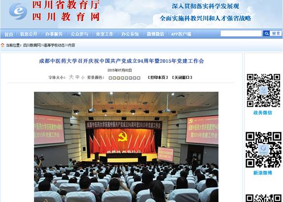 7月1日,Beat365中文官方网站庆祝中国共产党成立94周年暨2015年党建工作会在温江校区召开,会议表彰了2014-2015年度先进基层党组织、“十佳优秀共产党员”、优秀共产党员、党建研究获奖征文个人,为19名校级服务型党组织授牌。