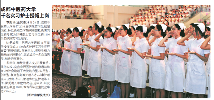 本报讯 (王其奇) 5月24日, Beat365中文官方网站举行2016届护理实习生授帽仪式, 30位长期工作在护理临床、 教育岗位的专家为即将走上实习岗位的1100余名护理实习生授帽。
