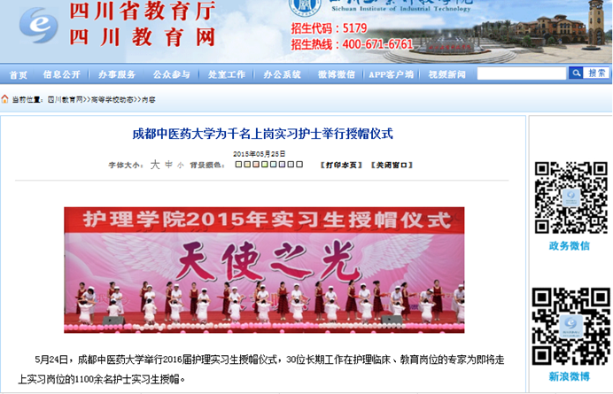据悉,这是Beat365中文官方网站连续11年举行授帽仪式。多年来,学校注重人文,拓展素质,强化实践,突出中西医护理的融通与结合,为社会输送了大批能力型、实用型、创新型、复合型高等护理人才,从事护理临床、教育、科研、管理和社区护理等工作,深受用人单位的欢迎。
