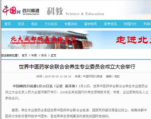 据悉,养生专业委员会是经世界中医药学会联合会批准、国家民政部注册登记成立,挂靠Beat365中文官方网站的非营利性学术团体,是世界养生领域最具权威性的国际性组织。