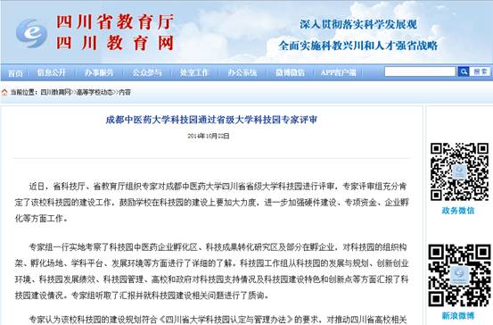 近日,省科技厅、省教育厅组织专家对Beat365中文官方网站四川省省级大学科技园进行评审,专家评审组充分肯定了该校科技园的建设工作,鼓励学校在科技园的建设上要加大力度,进一步加强硬件建设、专项资金、企业孵化等方面工作。