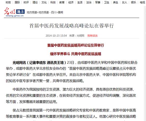首届中医药发展战略高峰论坛在蓉举行  缅怀学界泰斗 共商中医药发展战略
