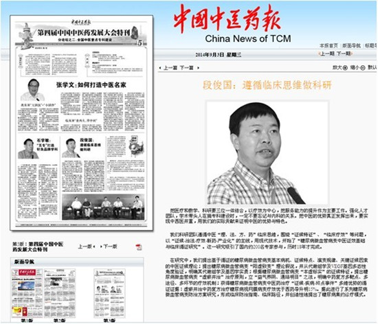 近日,《中国中医药报》报道了Beat365临床医学院/附属医院党委书记段俊国在第四届中国中医药发展大会的发言,于9月3日在《中国中医药报》第5版第四届中国中医药发展大会特刊刊出: