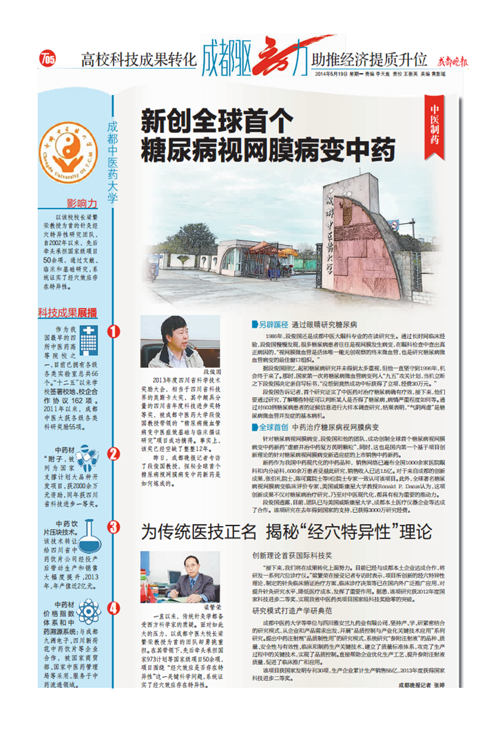 昨日,成都晚报记者专访了段俊国教授,探秘全球首个糖尿病视网膜病变中药新药是如何炼成的。