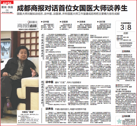 国医大师刘敏如谈经历、谈中医、谈医德,并称国医大师工作室建成后将把主要精力放在成都
