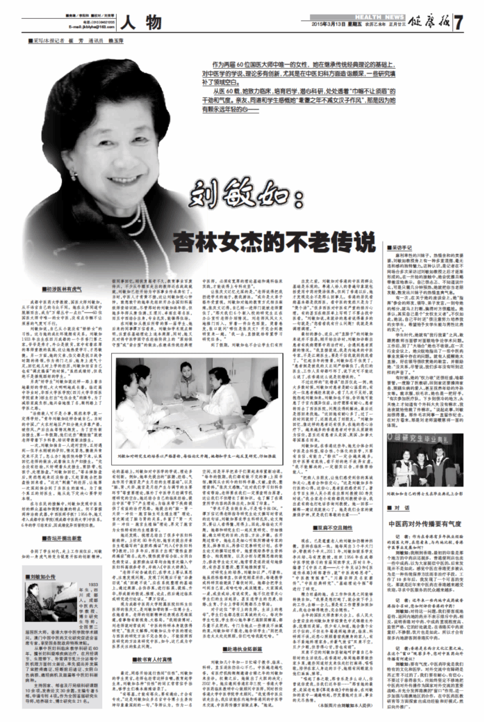 Beat365中文官方网站教授、国医大师刘敏如,从不讳言自己的与众不同。她在众多同道中脱颖而出,成为“万绿丛中一点红”——60位国医大师中唯一的女中医,没有点巾帼不让须眉的气度可不行。