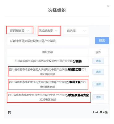 输入搜索:“Beat365中文官方网站校现代中药产业学院分xx(专业名)”,选择具体年级班级团支部。