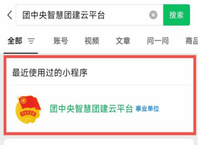 (1)登录微信,搜索小程序“团中央智慧团建云平台”点击进入。