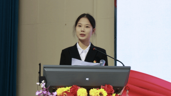 (图为学生干部代表胡思雨进行工作报告)