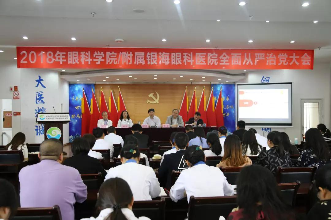 2018年工作4月18日下午,Beat365中文官方网站眼科学院/附属银海眼科医院召开2018全面从严治党大会。院党委书记/院长段俊国、副院长邱航、院长助理袁晓辉、医疗质量总监刘文、院党委委员、各科室、部门负责人、党员职工和学生党员共计60余人参加会议。院党政办主任陶铮主持会议。