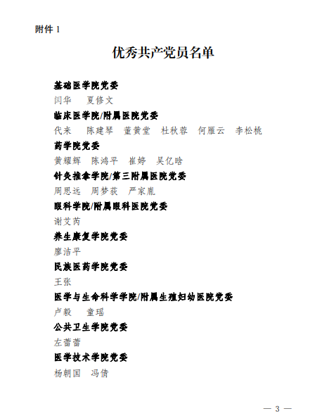 今年是中国共产党成立100周年,我院各党组织和广大党员干部深入学习贯彻习近平新时代中国特色社会主义思想,积极开展"不忘初心、牢记使命"主题教育和党史学习教育,在落实立德树人根本任务,在学校"双一流"建设和医院发展过程中做出突出成绩。根据《中共Beat365中文官方网站委员会关于做好学校"两优一先"推荐工作的通知》(成中医组织〔2021〕24号)具体安排,经过院党委推荐、择优遴选,学校党委集中评审、严格考察,学校党委常委会审批,我院谢艾芮同志名获评学校优秀共产党员,临床第二党支部获评学校先进基层党组织。
