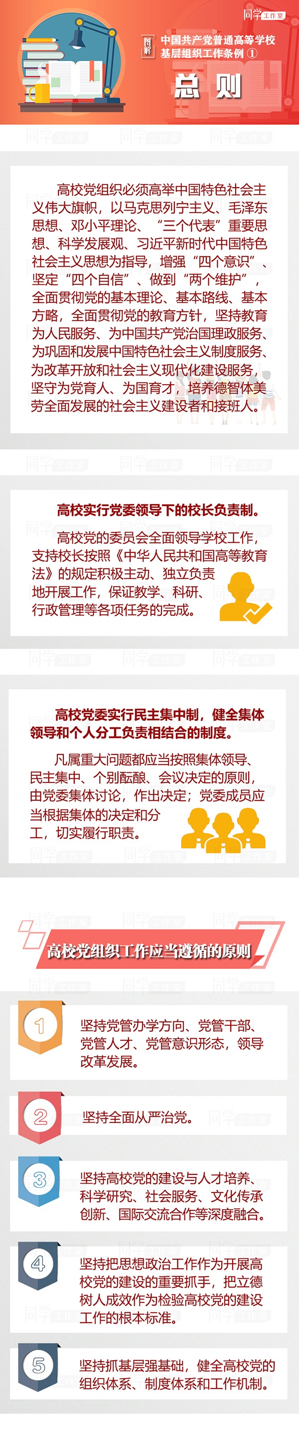 中央印发的新修订的《中国共产党普通高等学校基层组织工作条例》对高校基层党组织工作作出全面规范,体现了近年来高校党建工作的理论、实践和制度创新成果,是新时代高校党的建设的基本遵循。