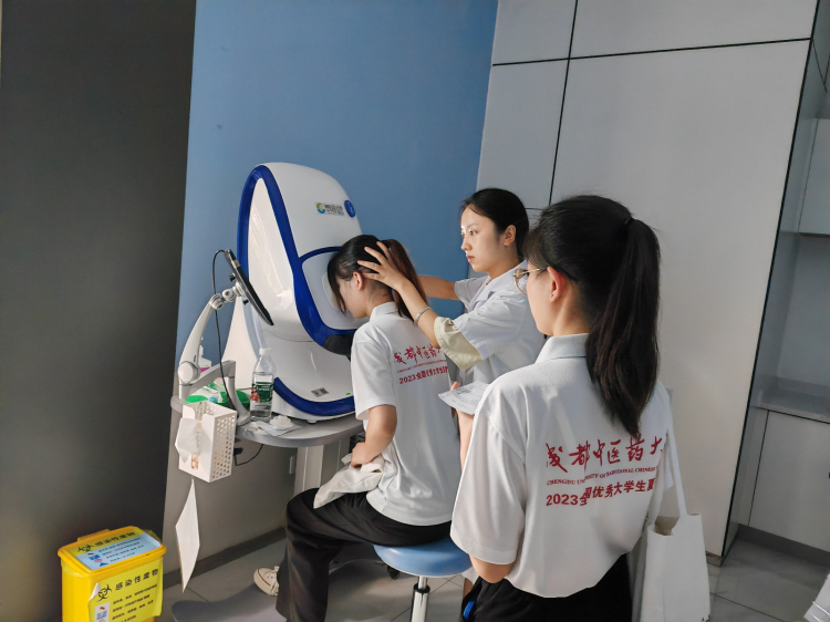 下午,营员们来到成都中医大银海眼科医院,依次参观了眼的奥秘-科普馆、国医大师工作室、成渝双城干细胞中心及实验室、屈光手术科、特检科,干眼治疗中心等,体验了模拟眼手术仪器、眼健康体检、目然雾化熏蒸治疗仪等项目。期间,眼健康体检中心主任肖建强为营员们开展了科普讲座,从中西医结合的角度,讲解了常见的眼部疾病和预防措施。在参观过程中,营员们不仅亲身感受了眼科学院的先进设备和技术,还与专家和老师进行了深入的交流和探讨,对眼科学院的教学和科研水平有了更深刻的认识。