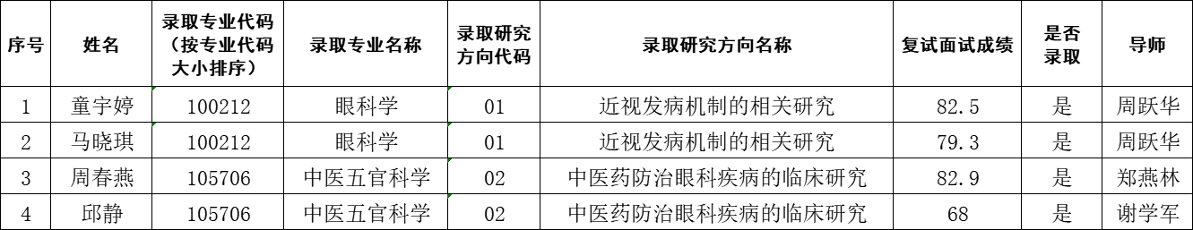 Beat365中文官方网站眼科学院2022年推免生拟录取名单(第一批)