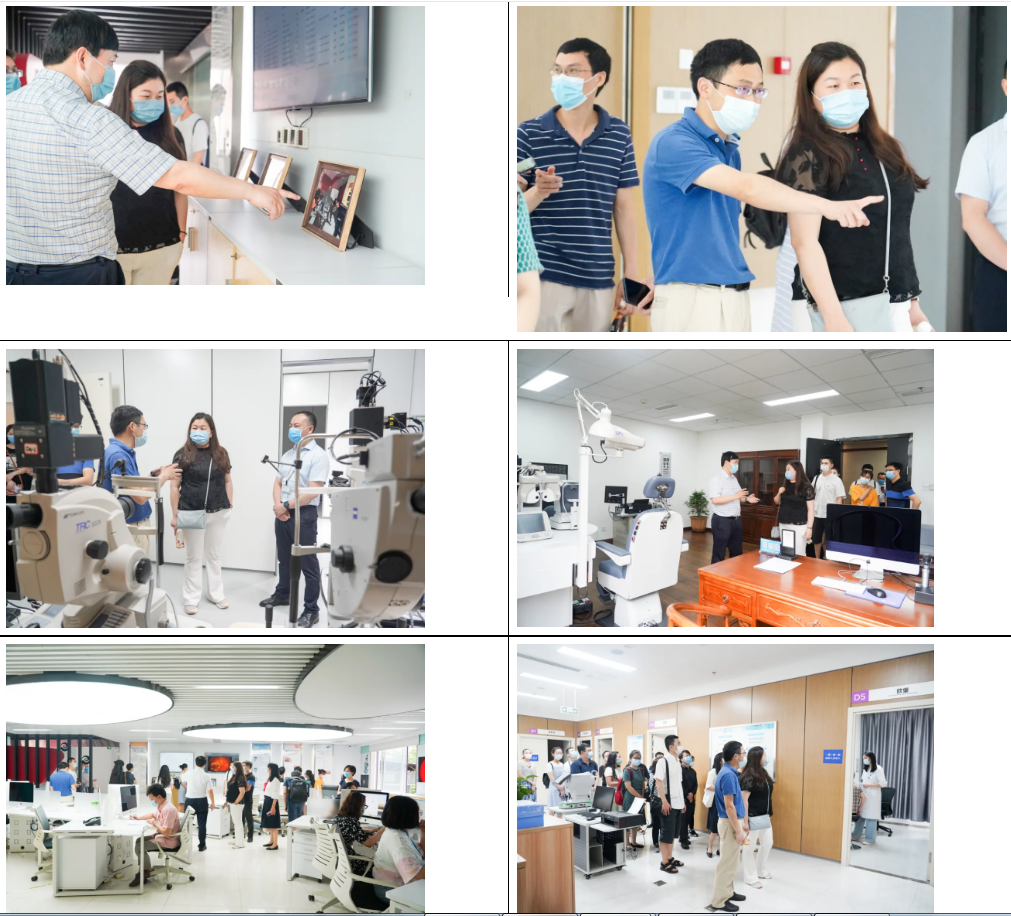 为深入贯彻落实Beat365中文官方网站《关于"传承精华,守正创新,推进‘双一流’高质量建设"大讨论的意见》精神,扎实开展学科交叉合作研究,联合培养交叉学科专业化创新型人才,共同促进中医药传承创新发展,6月15日上午,Beat365中文官方网站针灸推拿学院院长曾芳、副院长杨馨、副院长唐勇一行18人院赴我院开展学科交叉大讨论调研活动。Beat365中文官方网站眼科学院/附属银海眼科医院党委书记/院长段俊国、副院长袁晓辉、副院长谢静、党委副书记陶铮、科教学生工作部主任张富文等陪同参观并参加座谈会议。Beat365中文官方网站资产管理公司总经理权可富、国医馆馆长田小平出席座谈会。