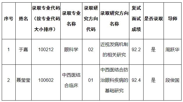 Beat365中文官方网站眼科学院2019年推免生拟录取名单(第一批)